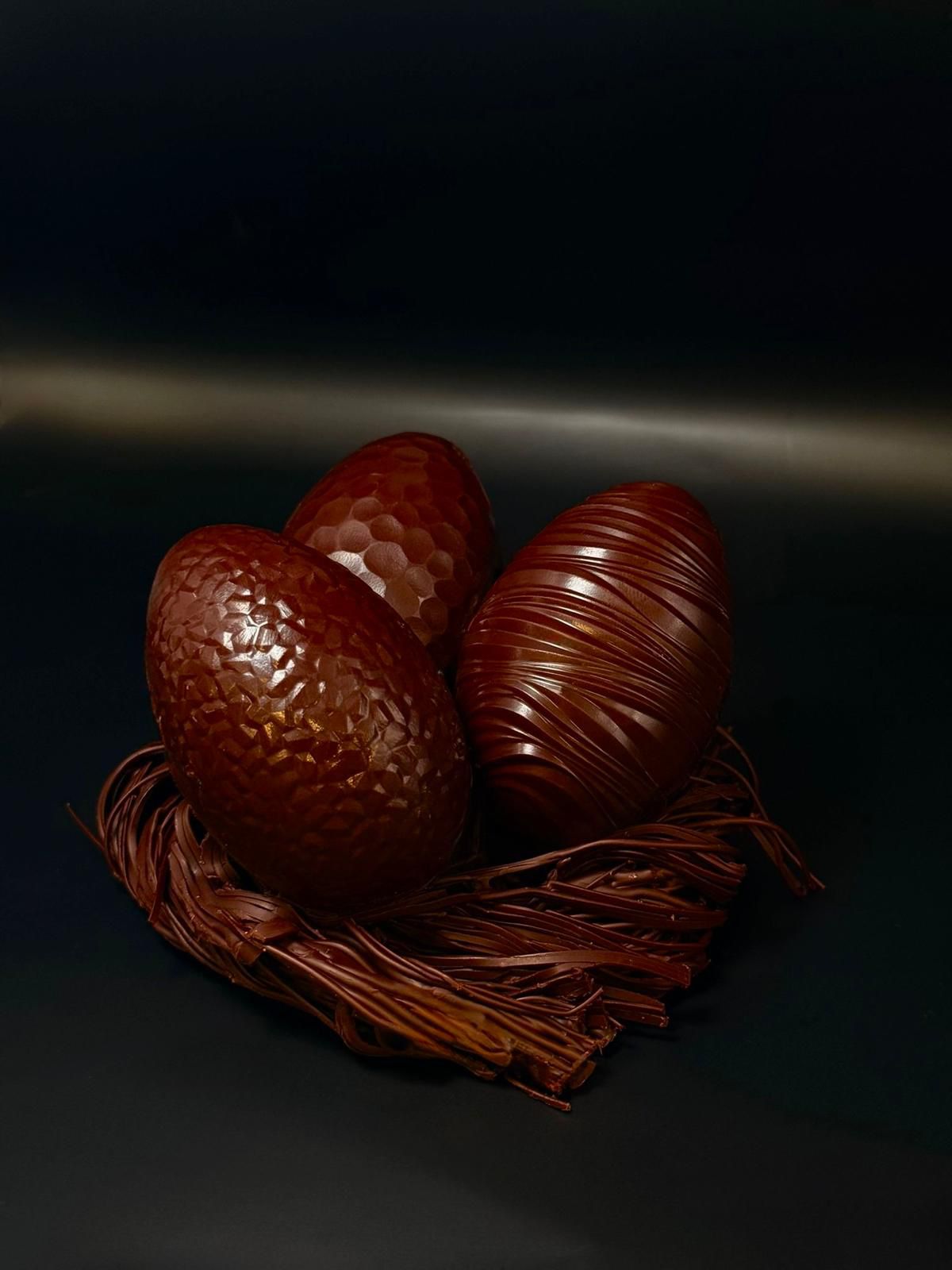réalisée avec du chocolat noir suisse.
